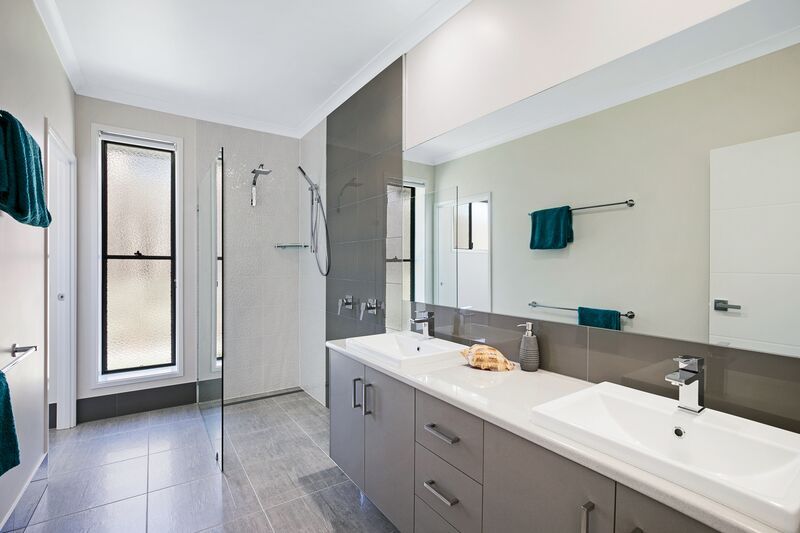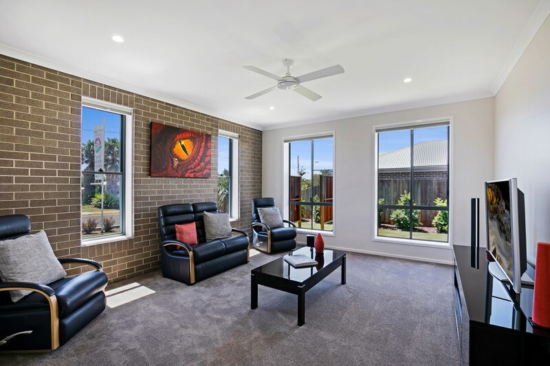 This plan was designed around a standard sized urban west facing allotment. To reduce the energy requirements of this home we placed three of the four bedrooms at the rear of the home to give them an easterly aspect and positioned the living areas to the north. The western frontage of the home is protected by the garage, the porch and a theatre room that would be used mainly in the evening. This leaves the service areas of the house, the laundry, a toilet, and the main bathroom on the south.